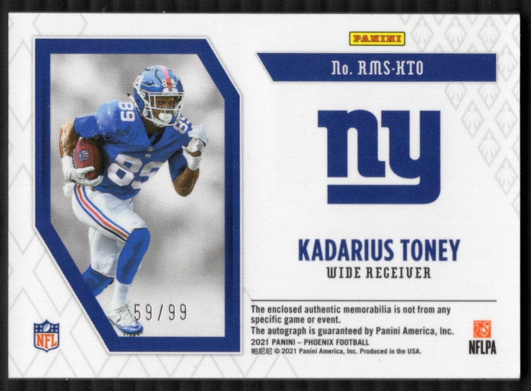 2021 Panini Phoenix Rising Rookie Kadarius Toney #RMS-KTO Autograph Patch 59/99