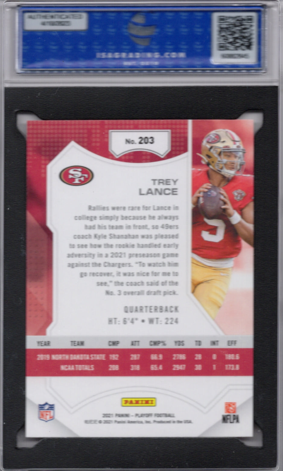 2021 Panini Playoff Trey Lance Rookie RC #203 ISA 10 Gem Mint