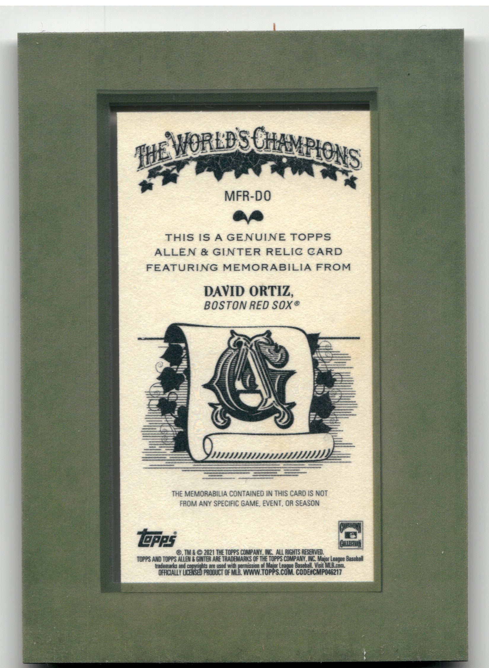 2021 Topps Allen & Ginter DAVID ORTIZ Mini Framed Game Jersey Relic #MFR-DO HOF