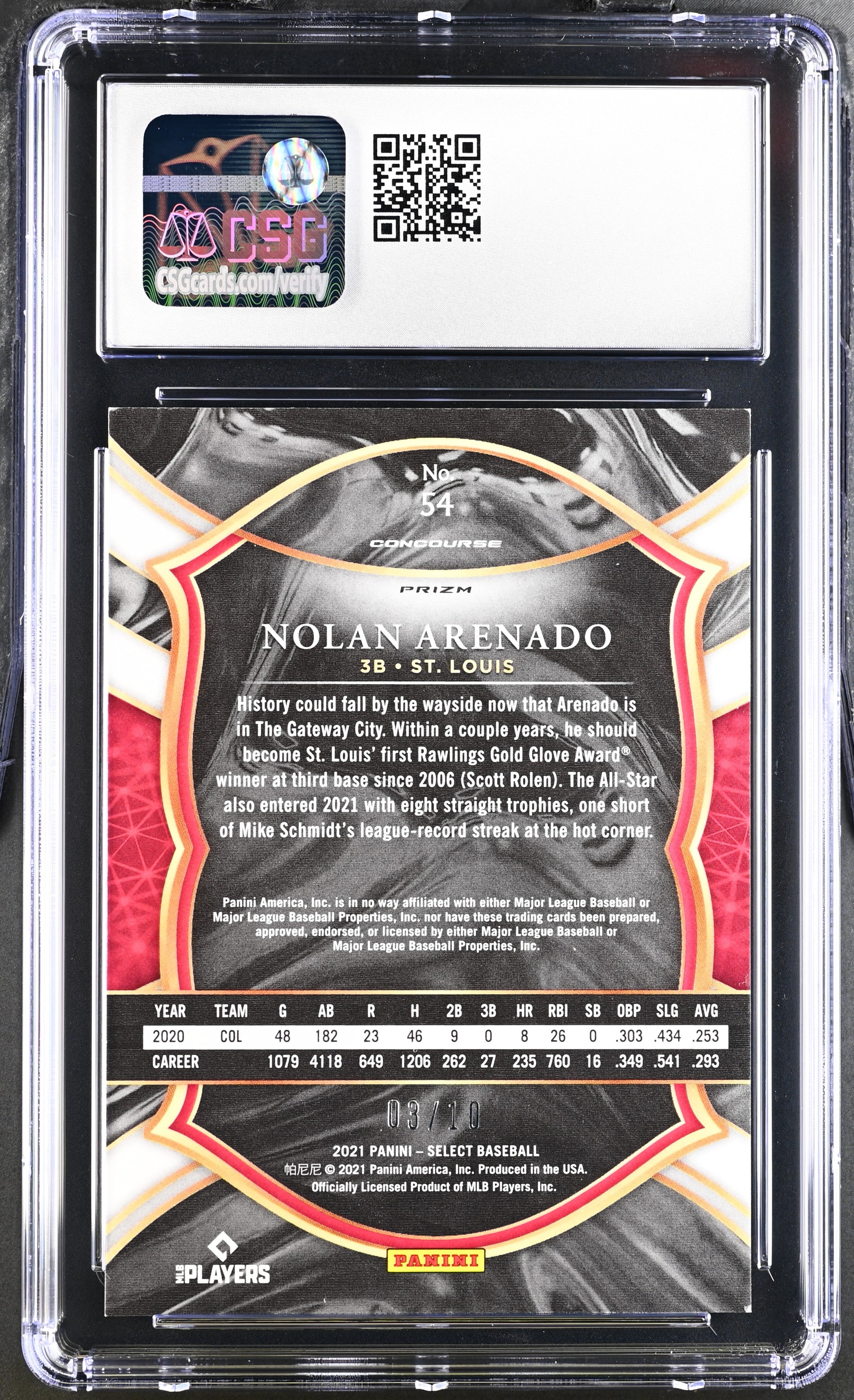 2021 Panini Select Concourse Pink Prizm /10 Nolan Arenado #54 CSG 8.5 Cardinals