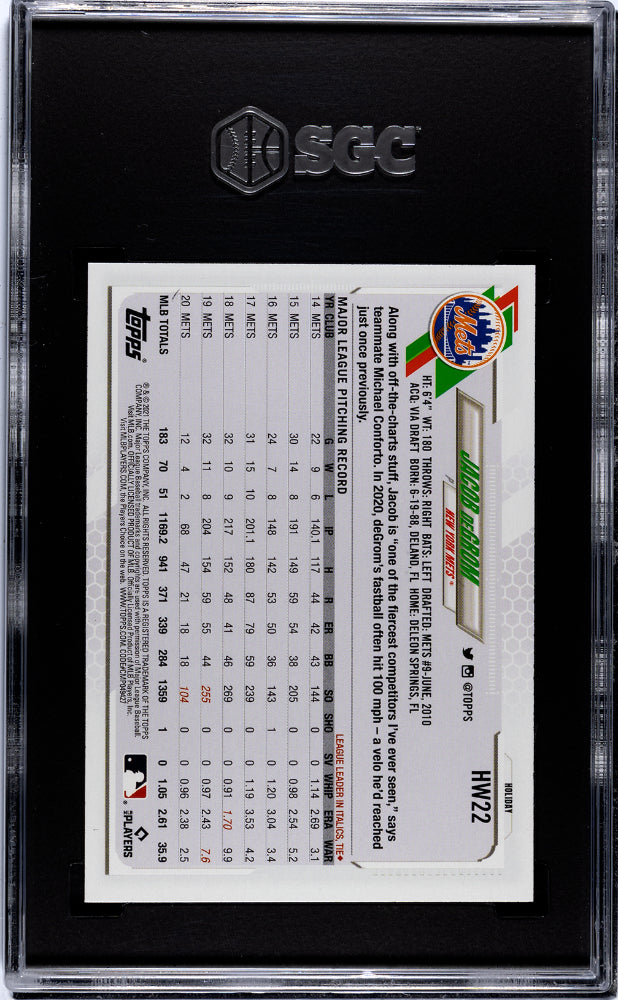 2021 Topps Holiday #HW22 Jacob DeGrom Scarf Variation SSP NY Mets SGC 10 (B-5)