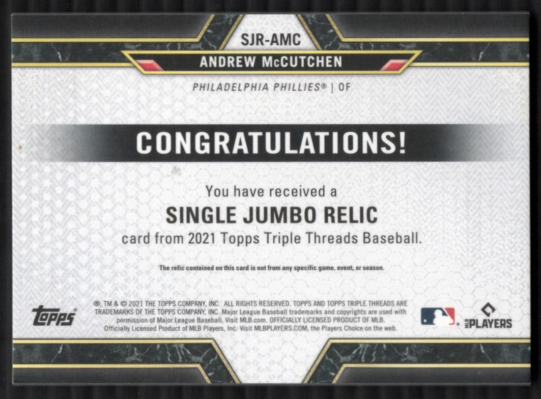 2021 Topps Triple Threads Andrew McCutchen #SJR-AMC 31/48 Game-Used Memorabilia