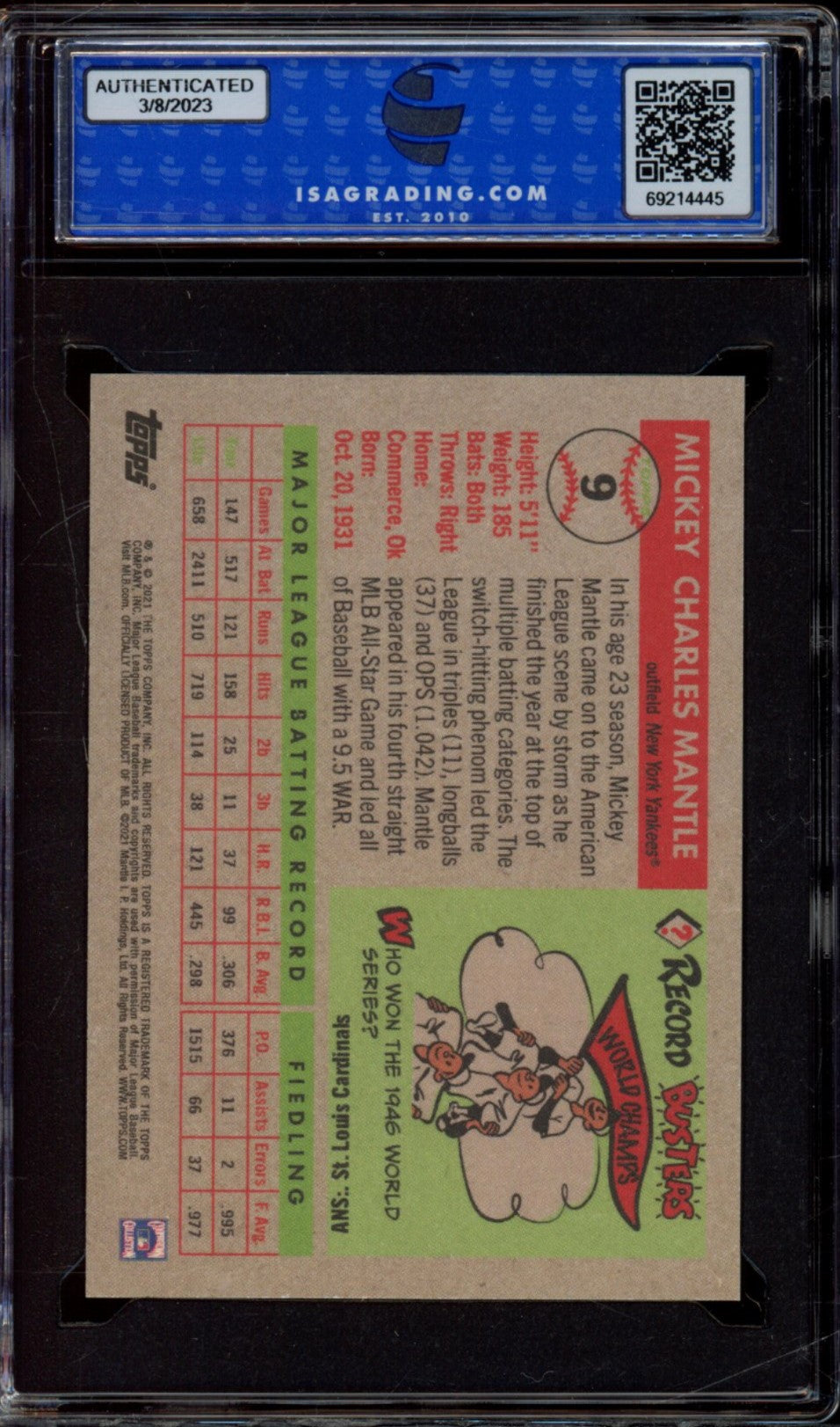 2021 Topps X Mantle Collection #9 Mickey Mantle 1955 Topps ISA 10 Yankees HOF