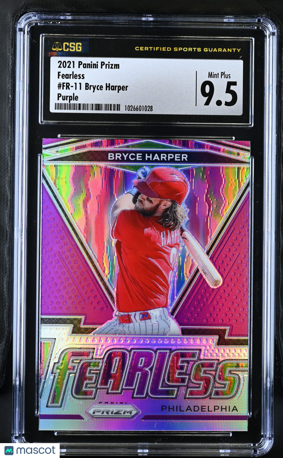 2021 Panini Prizm Bryce Harper #FR-11 Purple Fearless CSG 9.5 Phillies