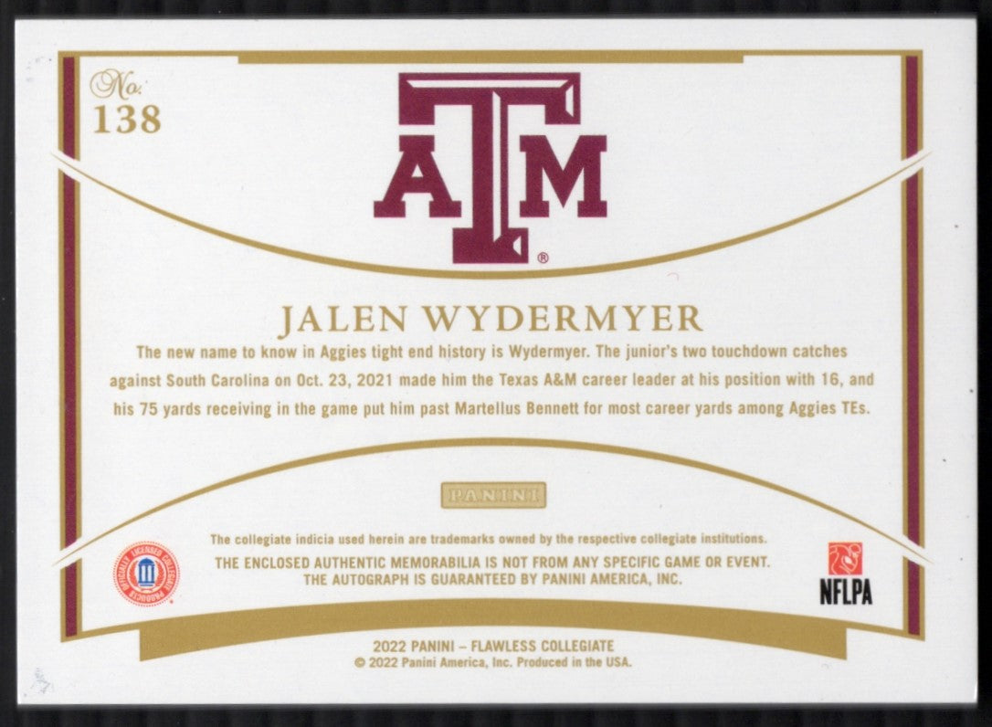 2022 Panini Flawless Collegiate Jalen Wydermyer #138 Patch RC 10/20