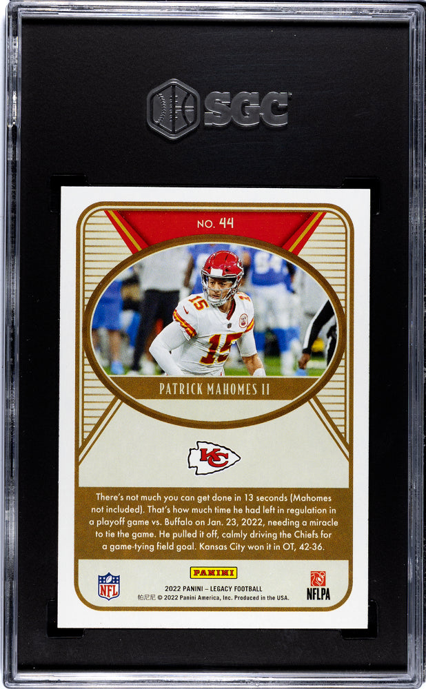 2022 Panini Legacy Patrick Mahomes II #44 Kansas City Chiefs POP 1 SGC 10 (A-2)