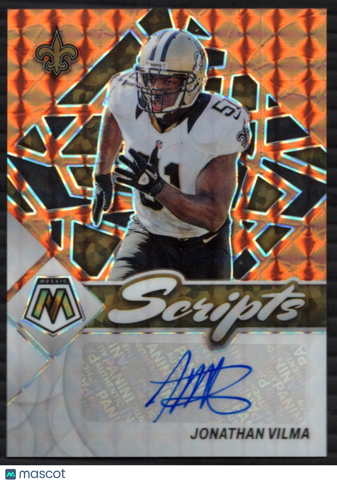 2022 Panini Mosaic Scripts Jonathan Vilma #S-JV Orange Prizm Autograph