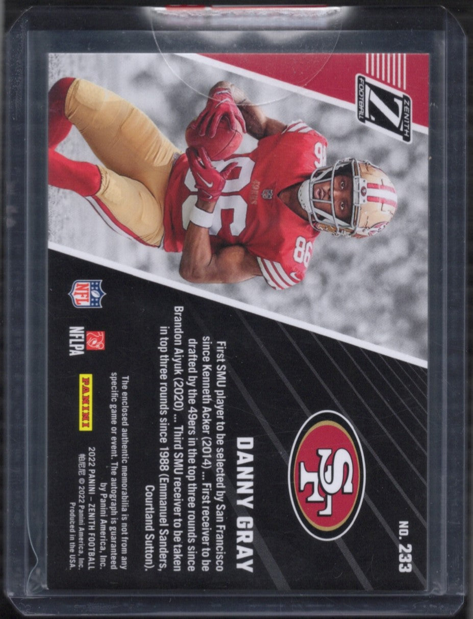 2022 Panini Zenith Danny Gray RC Patch Rookie Auto /299 49ers