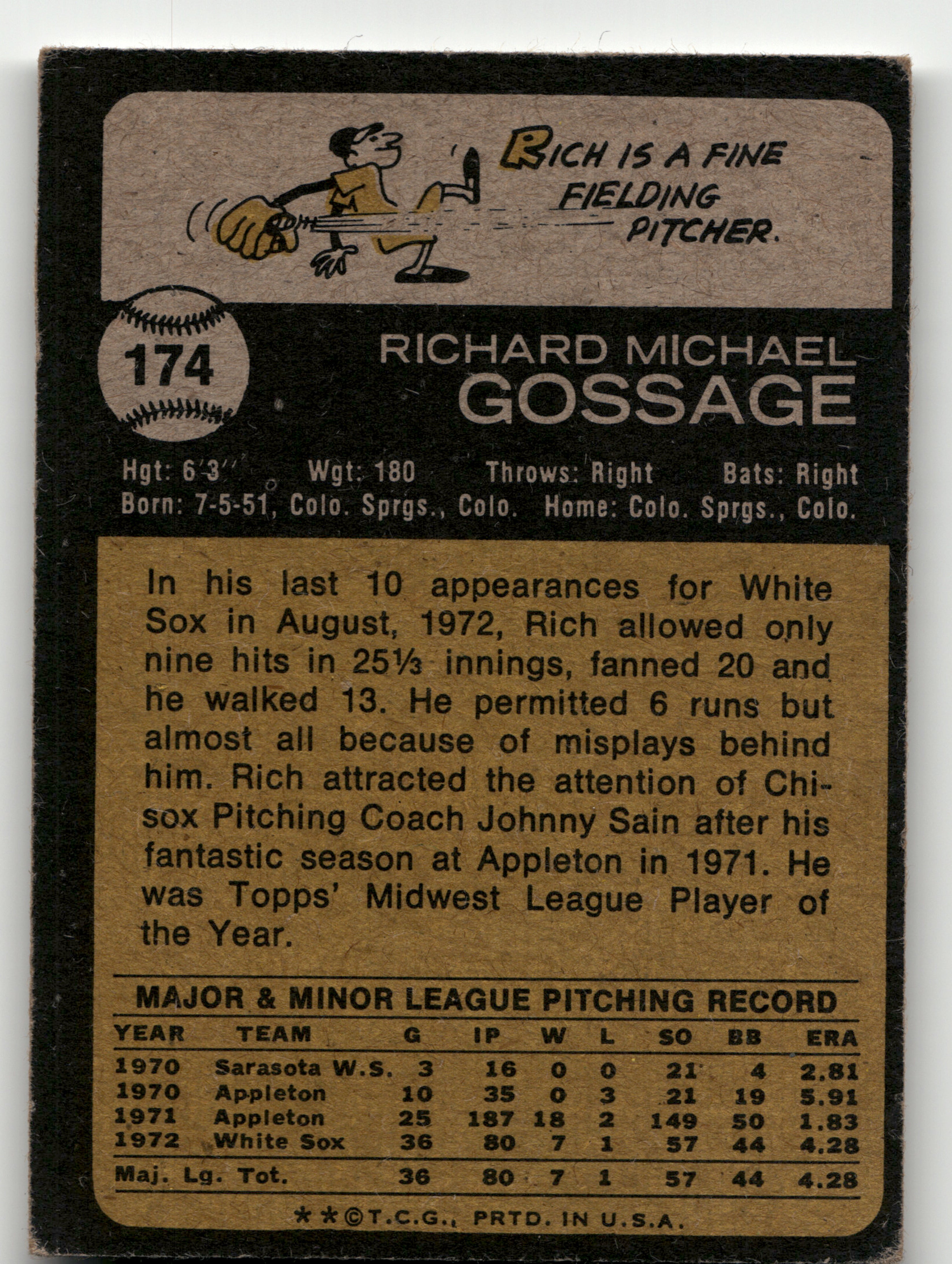Goose Gossage 1973 Topps #174 RC ROOKIE Auto Autographed Inscribed HoF 2008!
