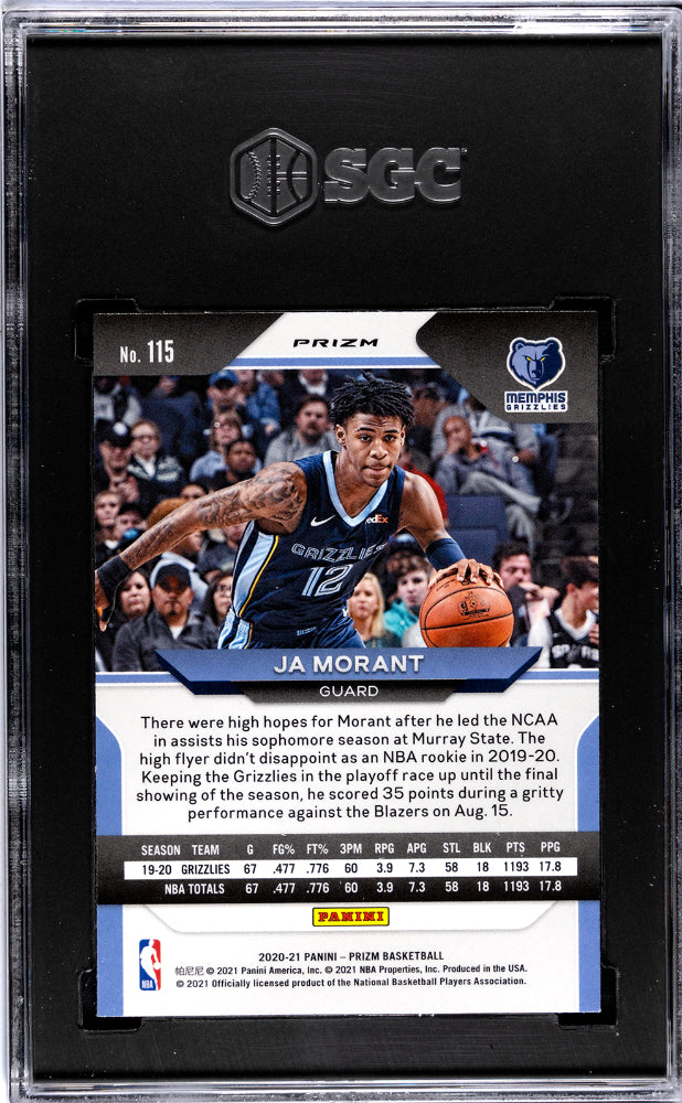 JA MORANT - 2020 PANINI PRIZM - PINK ICE PRIZMS #115 SGC 9.5 MT+ - GRIZZLIES