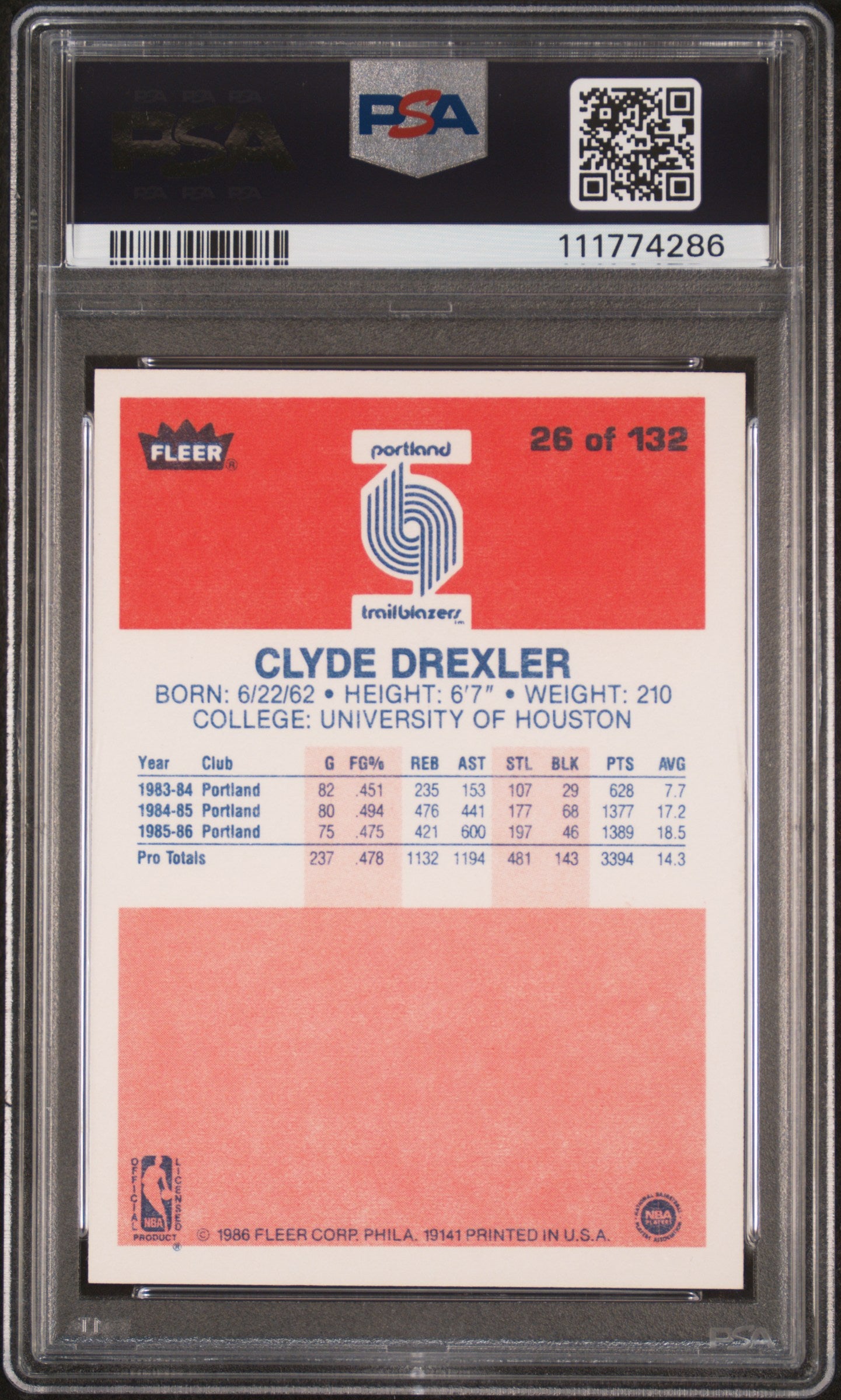 You are purchasing a 1986 Fleer Clyde Drexler #26 PSA A Auto 10. You will receive the exact item in the photographs. Thank you for looking. Listed With Mascot.Returns & Exchanges