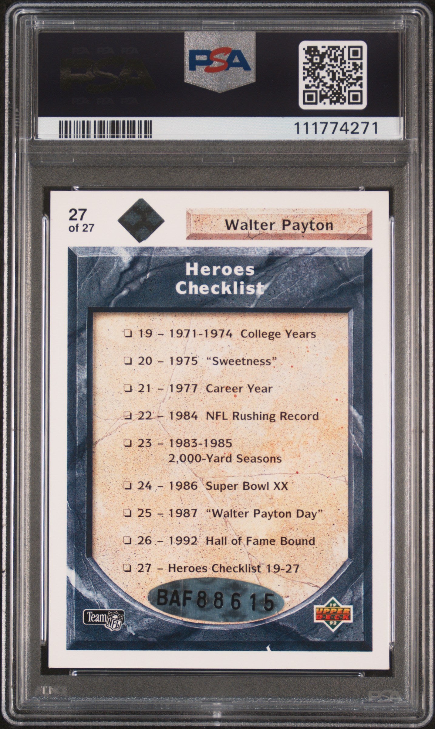 1992 Upper Deck Heroes Walter Payton /2800 Autograph Checklist PSA 7 Bears HOF