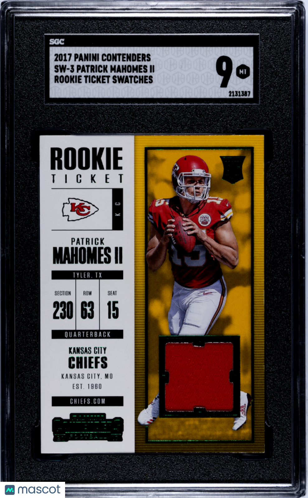 You are purchasing a 2017 Panini Contenders Patrick Mahomes Rookie Ticket Vertical Swatch SW-3 SGC 9 You will receive the exact item in the photographs. Thank you for looking. Listed With Mascot.