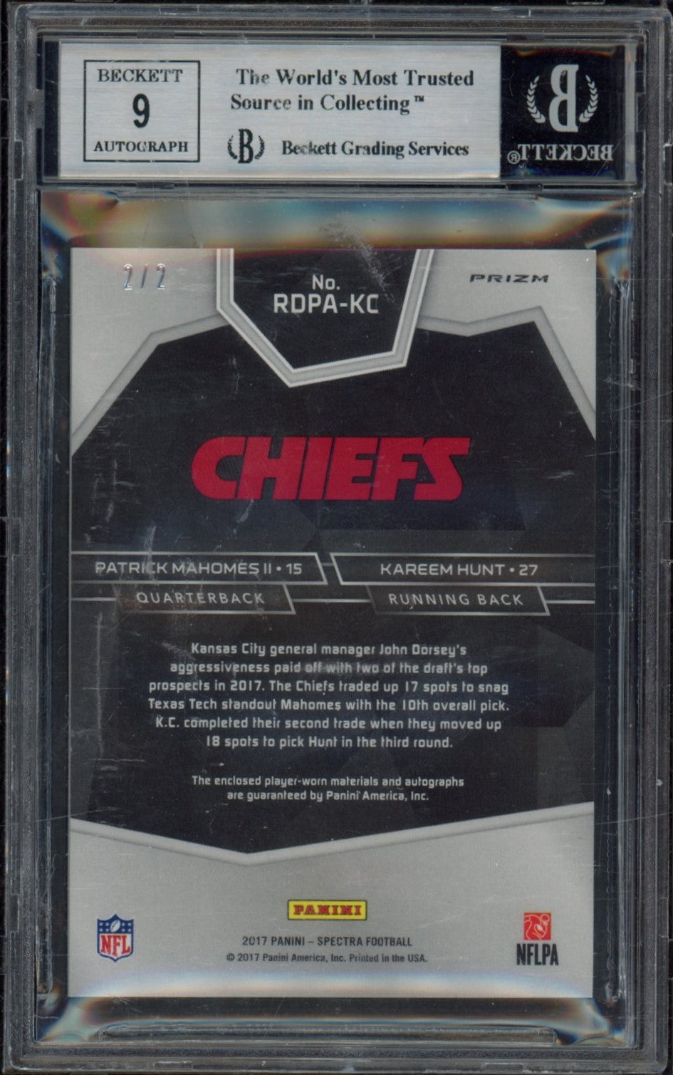 2017 Spectra Rookie Auto Neon Orange/2 Patrick Mahomes Kareem Hunt #7 BGS 9/9