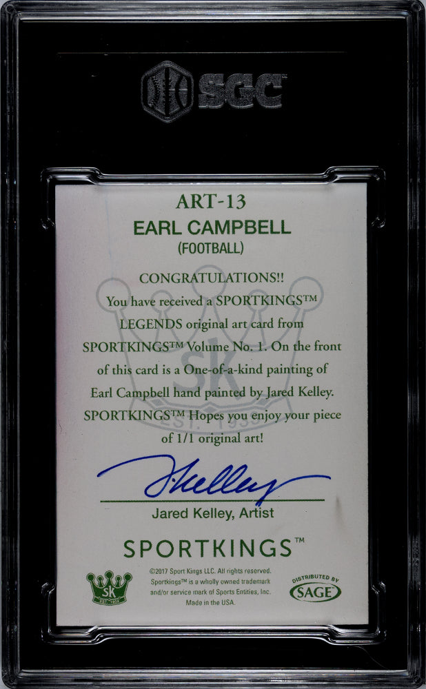 2018 Sport Kings Earl Campbell 1/1 #ART-13 Jared Kelley Art SGC A OILERS HOF