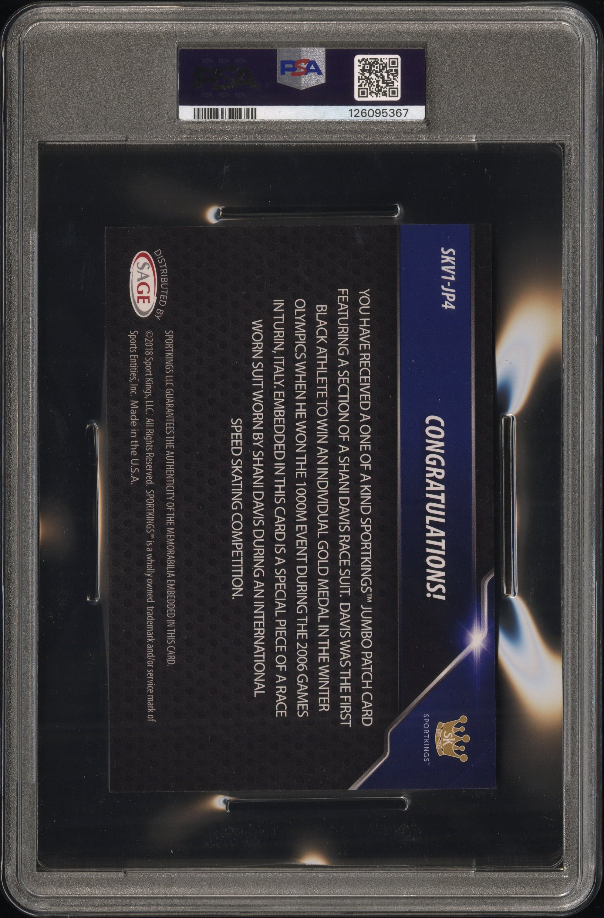 126095367-MO You are purchasing a 2018 Sportkings Jumbo Patches 1/1 Shani Davis #JP4 1/1 PSA 9. You will receive the exact item in the photographs. Thank you for looking. Listed With Mascot.Returns & Exchanges
