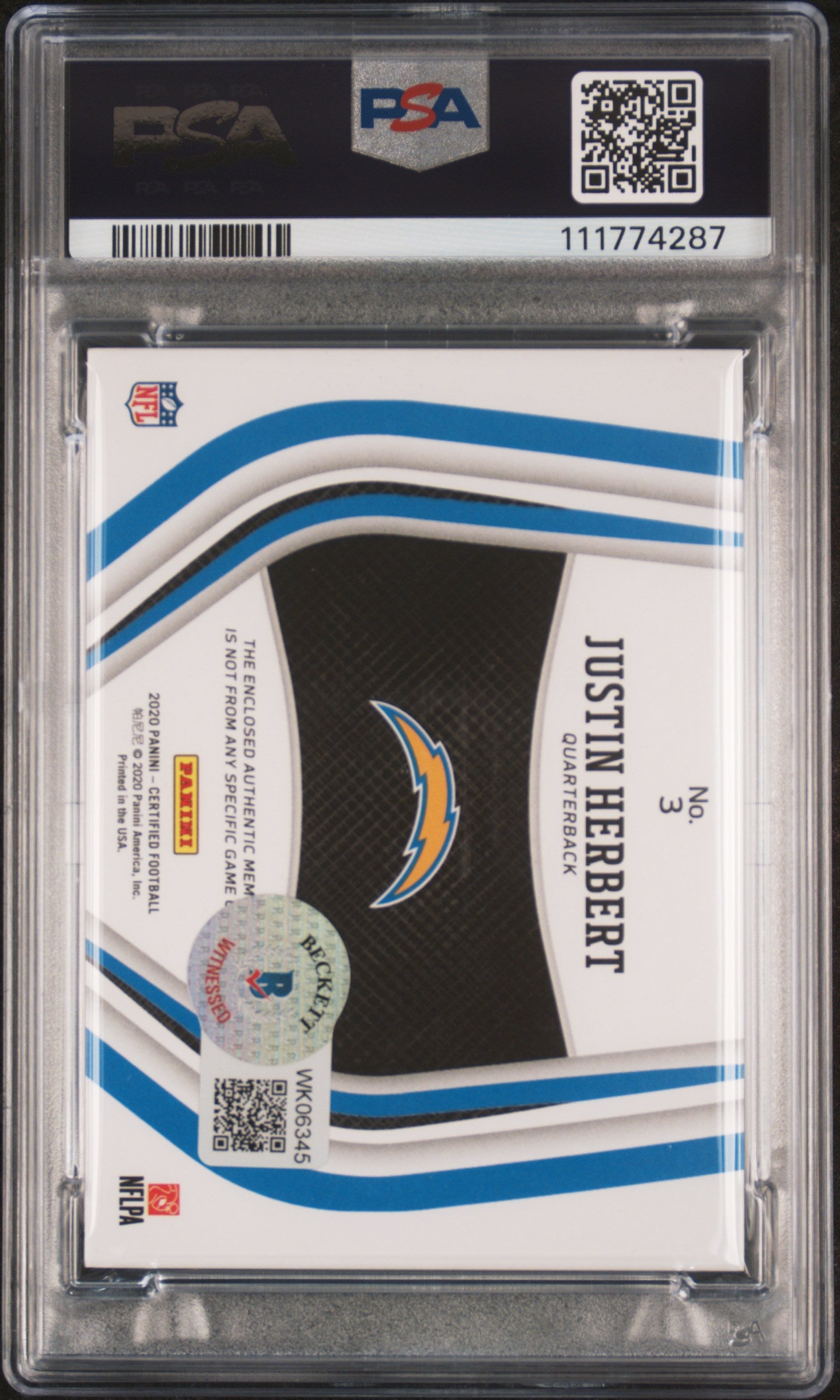 2020 Panini Certified New Generation Justin Herbert Rookie Auto Blue /99 PSA 7