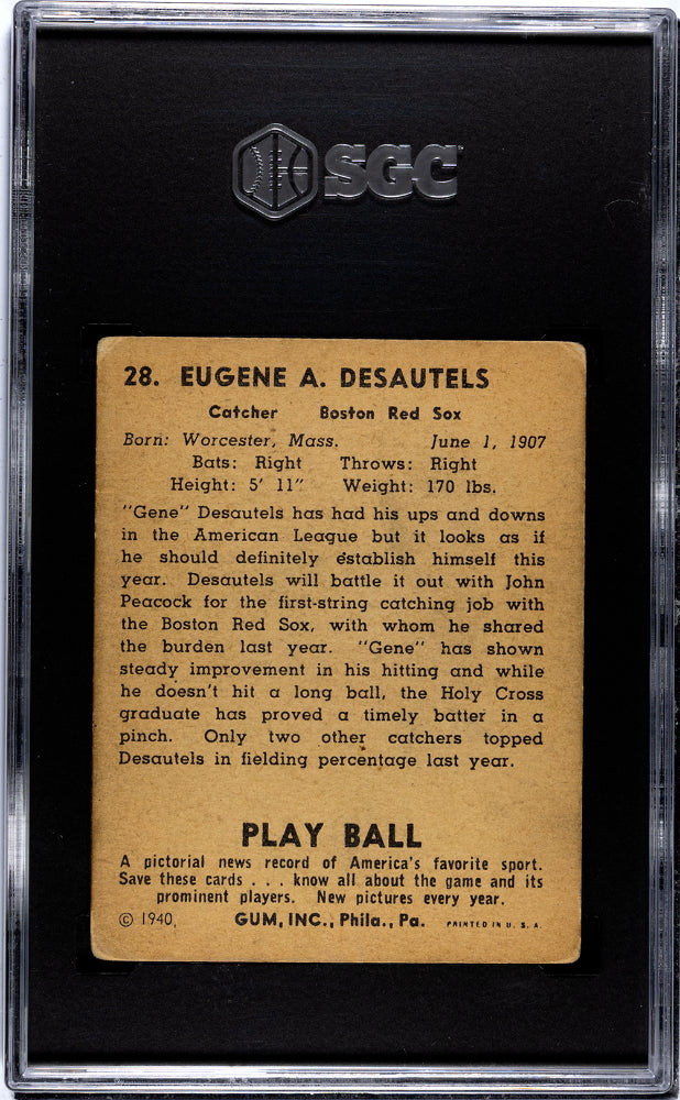 1940 Playball Gene Desautels #28 Boston Red Sox SGC 3 (A-5)
