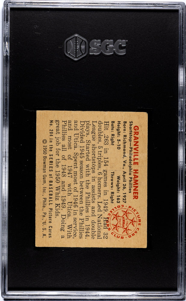 You are purchasing a 1950 Bowman Granny Hamner #204 SGC 5. You will receive the exact item in the photographs. Thank you for looking. Listed With Mascot.Returns & Exchanges