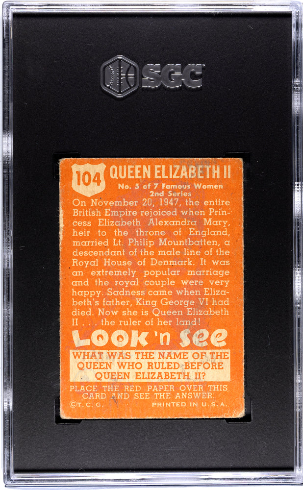 1952 Topps Look 'n See Queen Elizabeth II #104 SGC 2.5