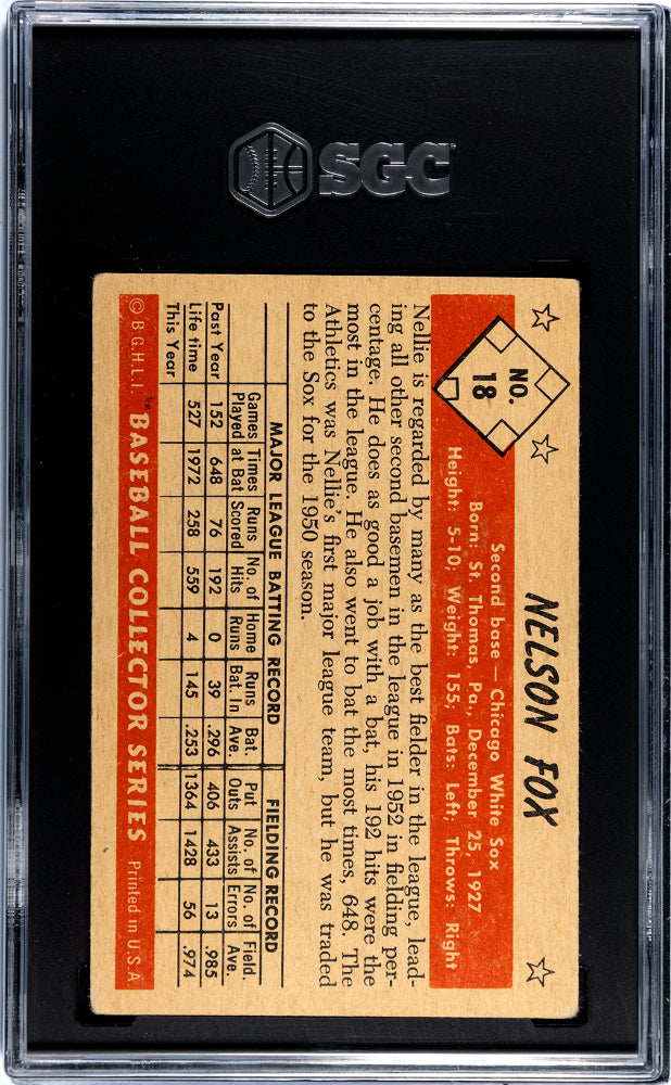 1953 Bowman Color Nelson Fox #18 Chicago White Sox SGC 4 (A-6)