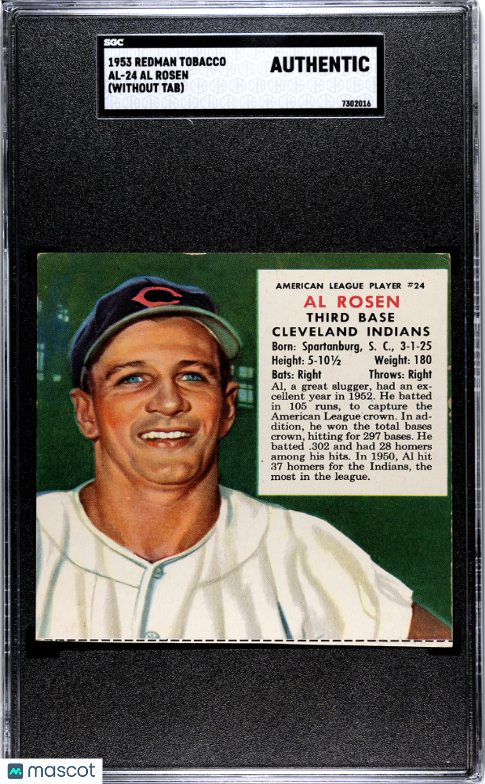 1953 Redman Tobacco Al Rosen #AL-24 (Without Tab) SGC A Cleveland Indians