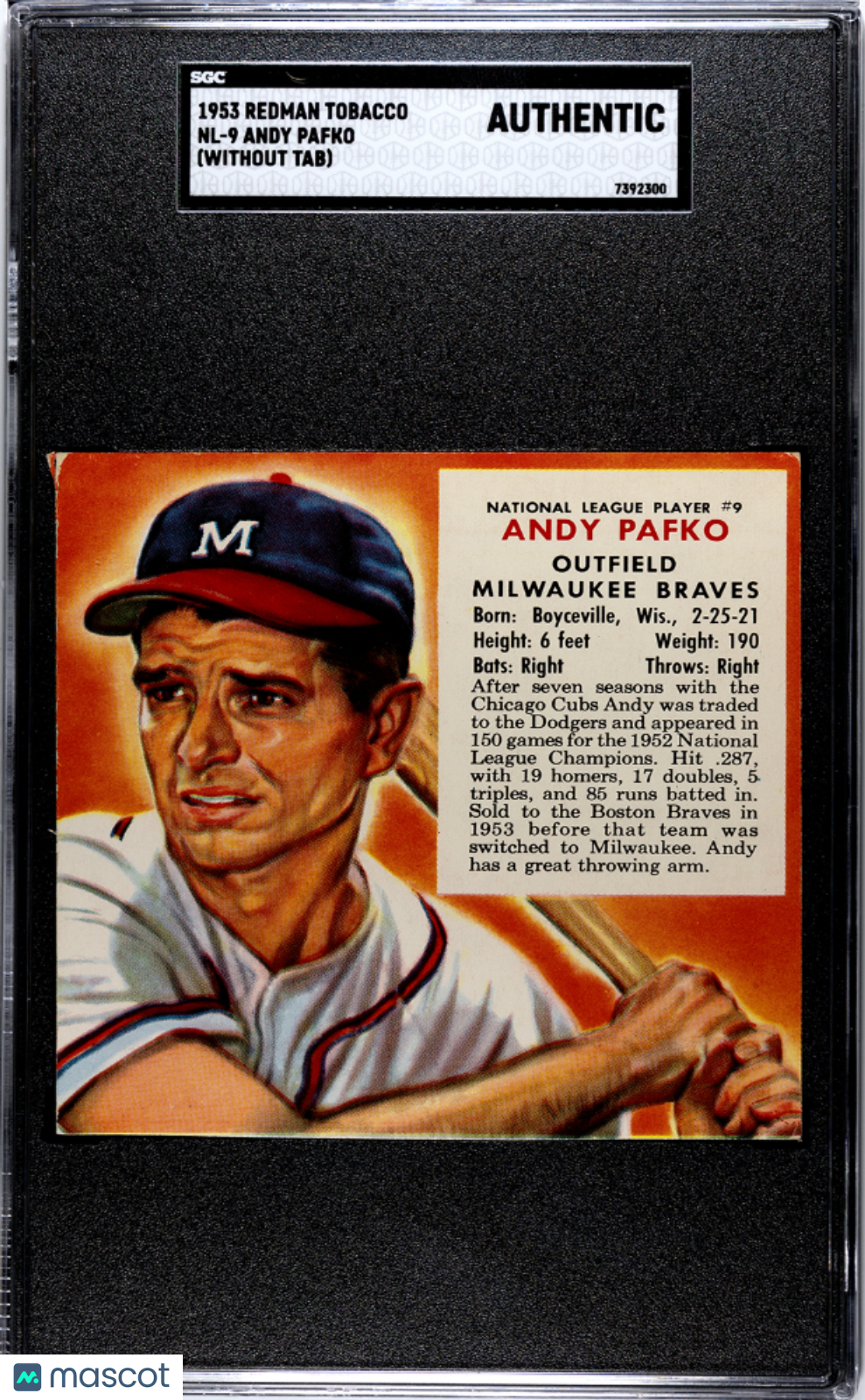 1953 Redman Tobacco Andy Pafko #NL-9 (Without Tab) SGC A Milwaukee Braves