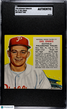 1953 Redman Tobacco Del Ennis #NL-17 (Without Tab) SGC A Philadelphia Phillies