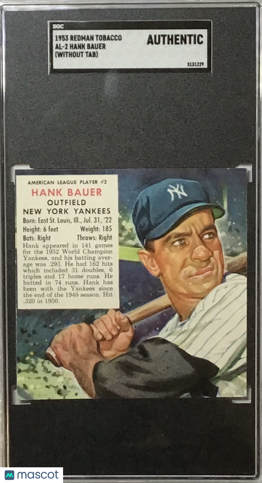 1953 Redman Tobacco Hank Bauer #AL-2 (Without Tab) SGC A NEW YORK YANKEES