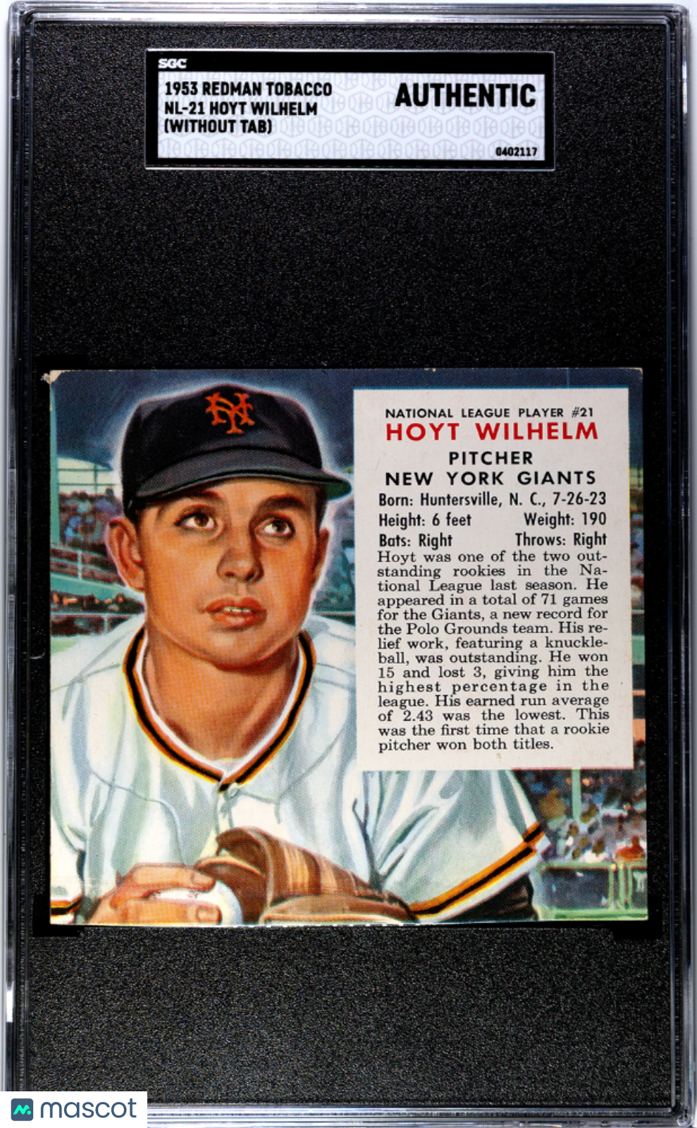 You are purchasing a 1953 Redman Tobacco Hoyt Wilhelm #NL-21 (Without Tab) SGC A. You will receive the exact item in the photographs. Thank you for looking. Listed With Mascot.Returns & Exchanges