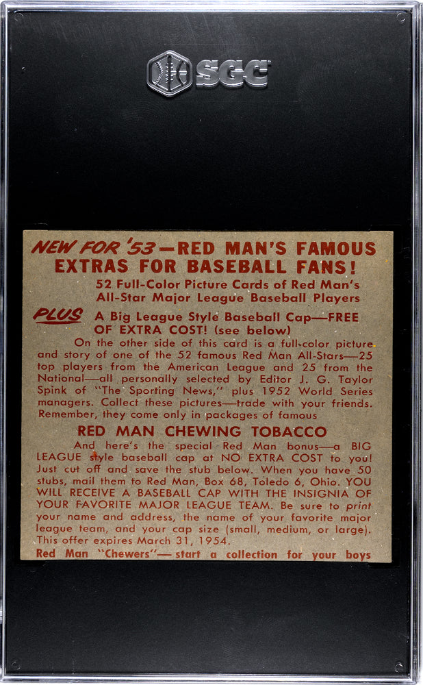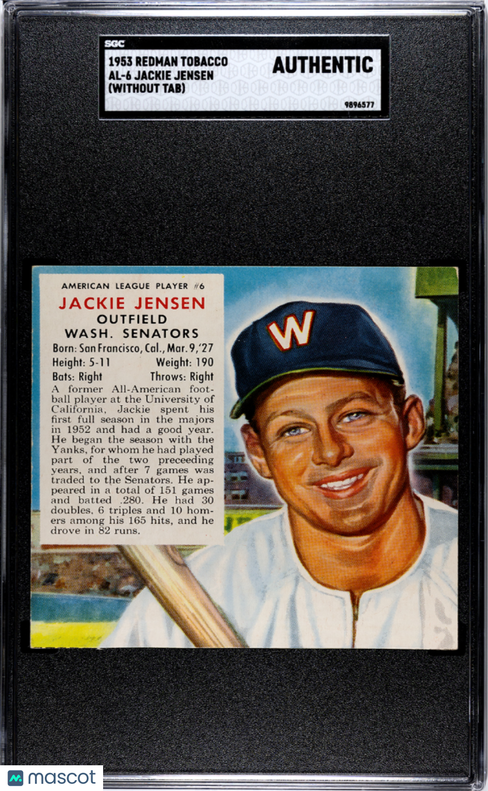 1953 Redman Tobacco Jackie Jensen #AL-6 (Without Tab) SGC A Washington Senators