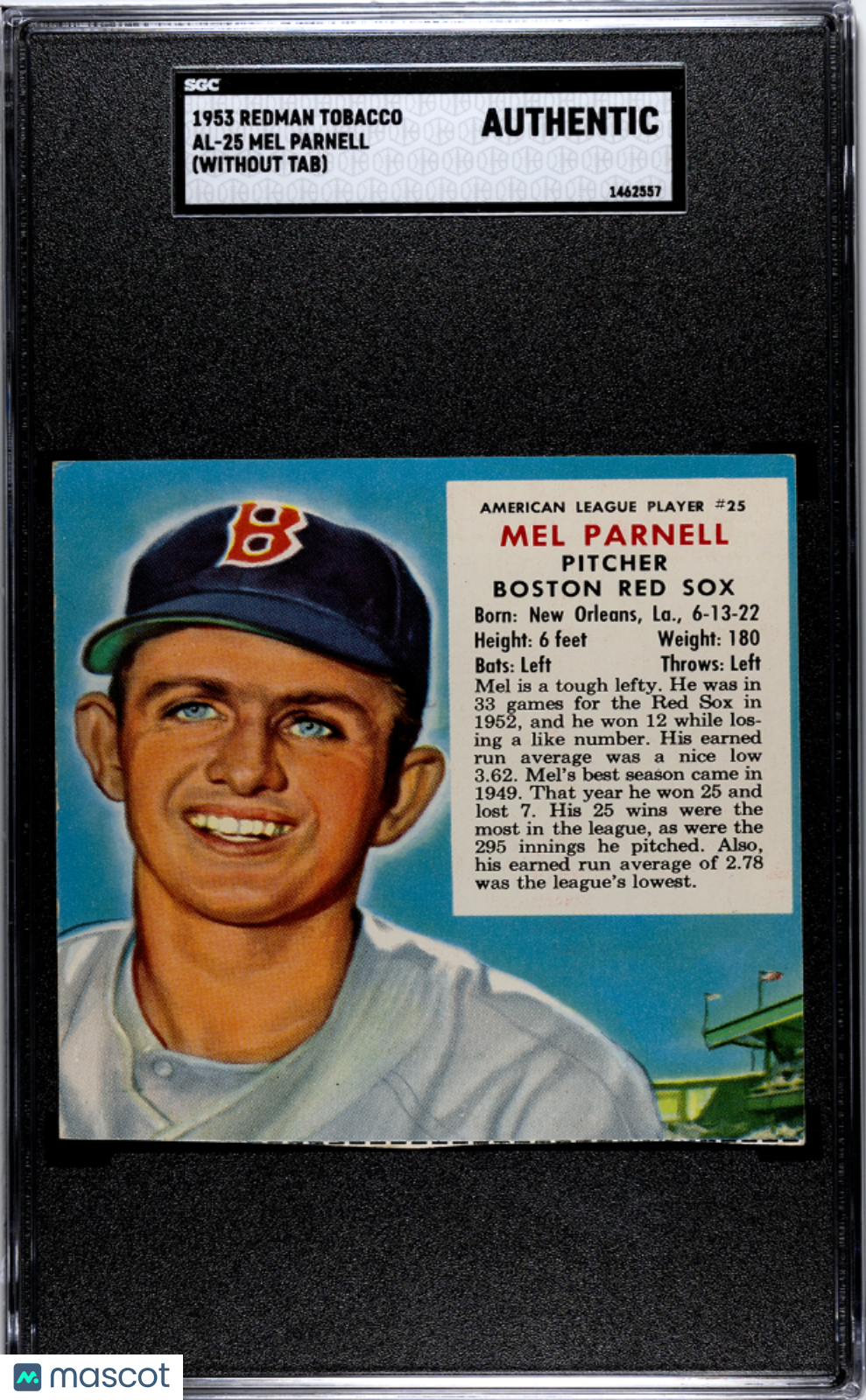 1953 Redman Tobacco Mel Parnell #AL-25 (Without Tab) SGC A Boston Red Sox