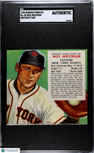 1953 Redman Tobacco Wes Westrum #NL-20 (Without Tab) SGC A NEW YORK GIANTS