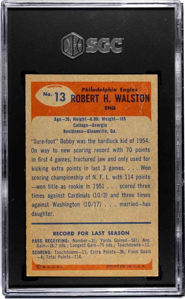 1955 Bowman Football Bob Walston #13 Philadelphia Eagles SGC 6.5 (A-2)