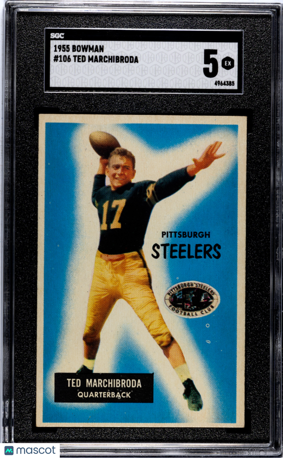 You are purchasing a 1955 Bowman Ted Marchibroda #106 SGC 5. You will receive the exact item in the photographs. Thank you for looking. Listed With Mascot.Returns & Exchanges