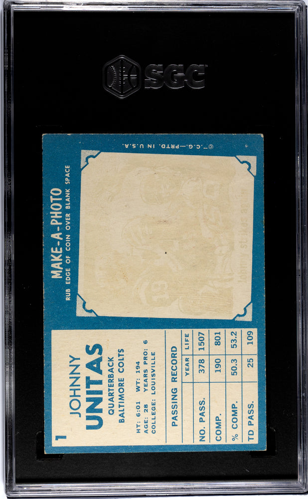 1961 Topps Football #1 Johnny John Unitas Baltimore Colts HOF SGC 1.5 (B-2)