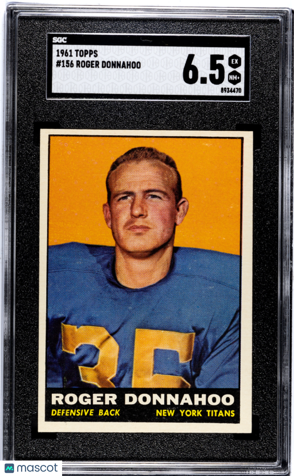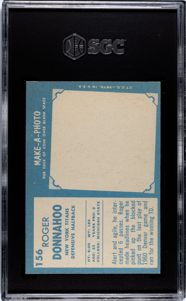 1961 Topps Football Roger Donnahoo #156 RC ROOKIE NEW YORK TITANS SGC 6.5 (A-4)