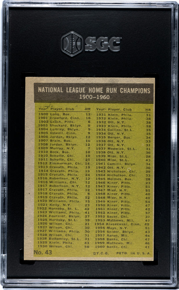 1961 Topps N. L. Home Run Leaders Hank Aaron Ernie Banks Mathews Boyer #43 SGC 4