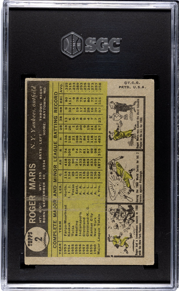 1961 Topps Roger Maris #2 SGC 3 NEW YORK YANKEES WELL CENTERED (A-6)