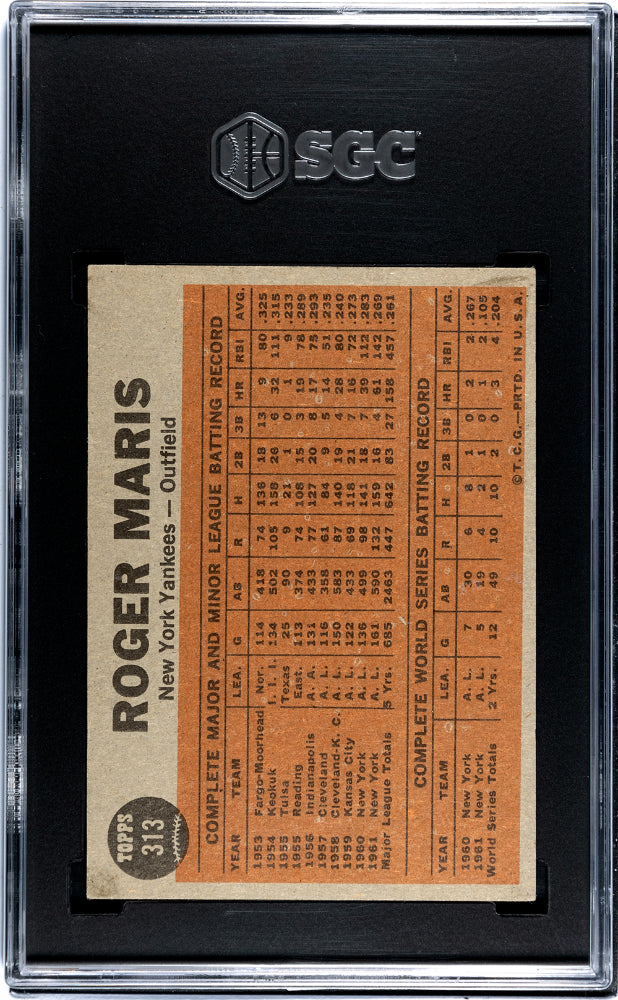 1962 Topps Roger Maris Blasts 61st #313 SGC 5 NEW YORK YANKEES (A-6)