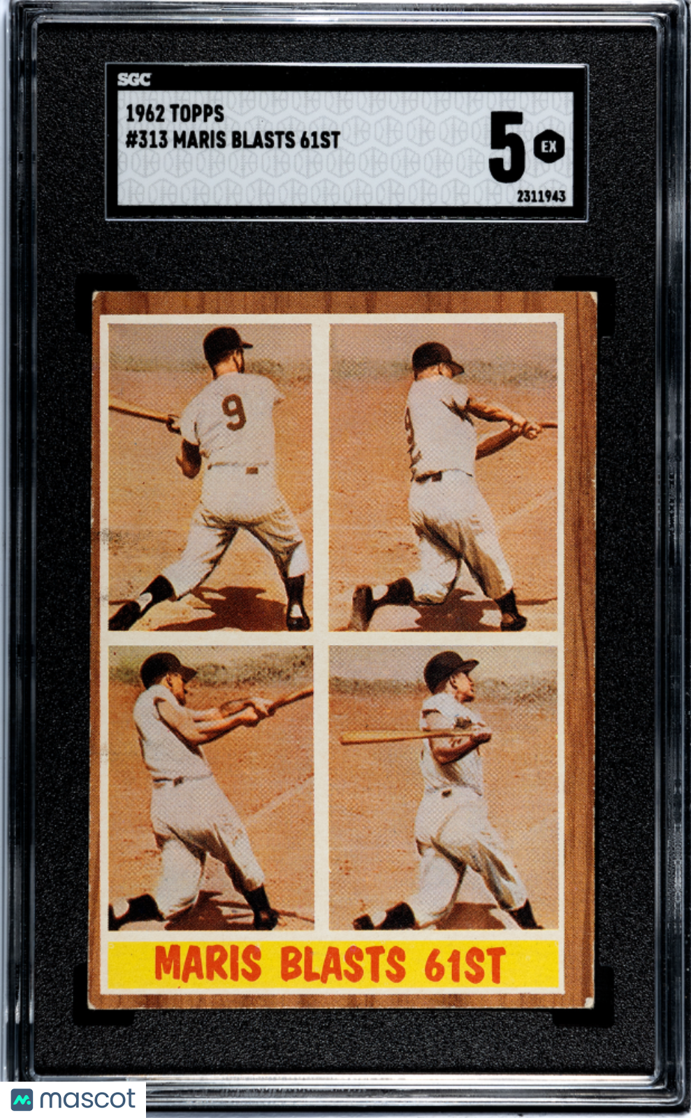 You are purchasing a 1962 Topps Maris Blasts 61st #313 SGC 5. You will receive the exact item in the photographs. Thank you for looking. Listed With Mascot.Returns & Exchanges