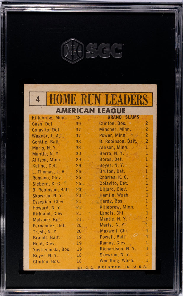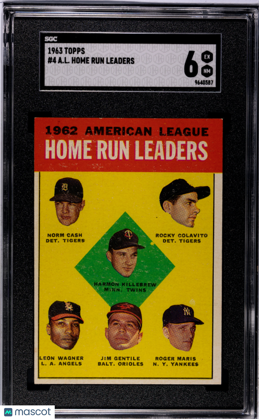 1963 Topps #4 AL Home Run Leaders Harmon Killebrew Roger Maris SGC 6 (A-7)