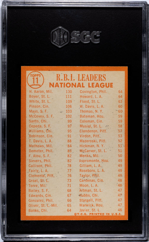 1964 Topps #11 NL RBI Leaders Hank Aaron, Boyer and White SGC 5 HOF