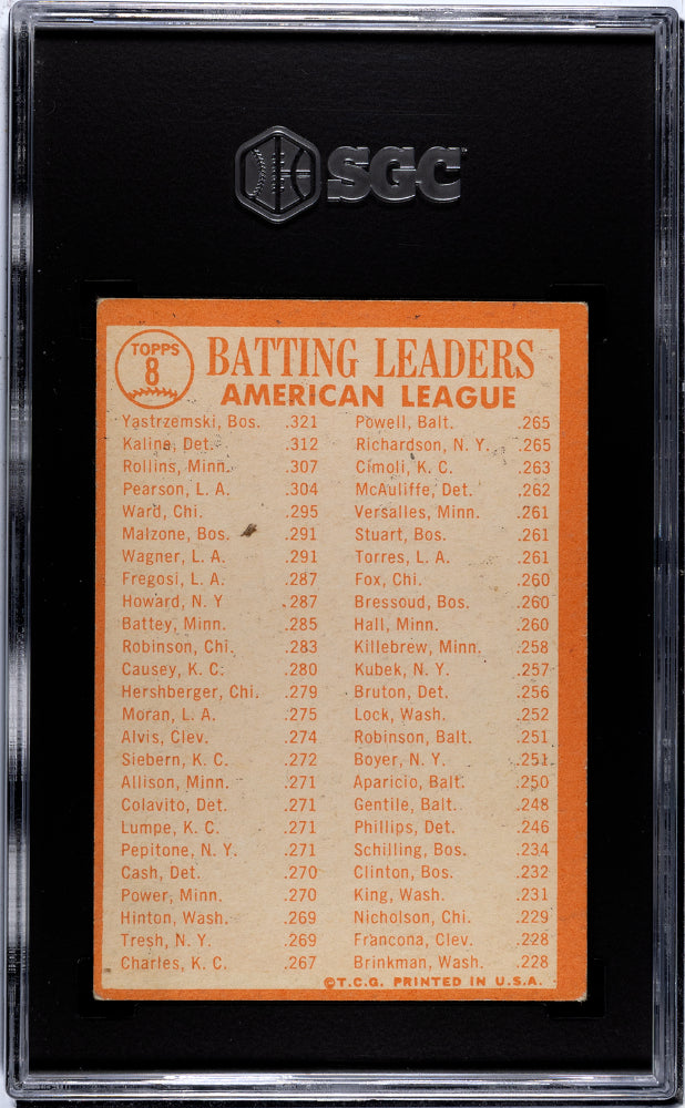 1964 Topps #8 AL Batting Leaders w/ Carl Yastrzemski Al Kaline HOF SGC 4.5