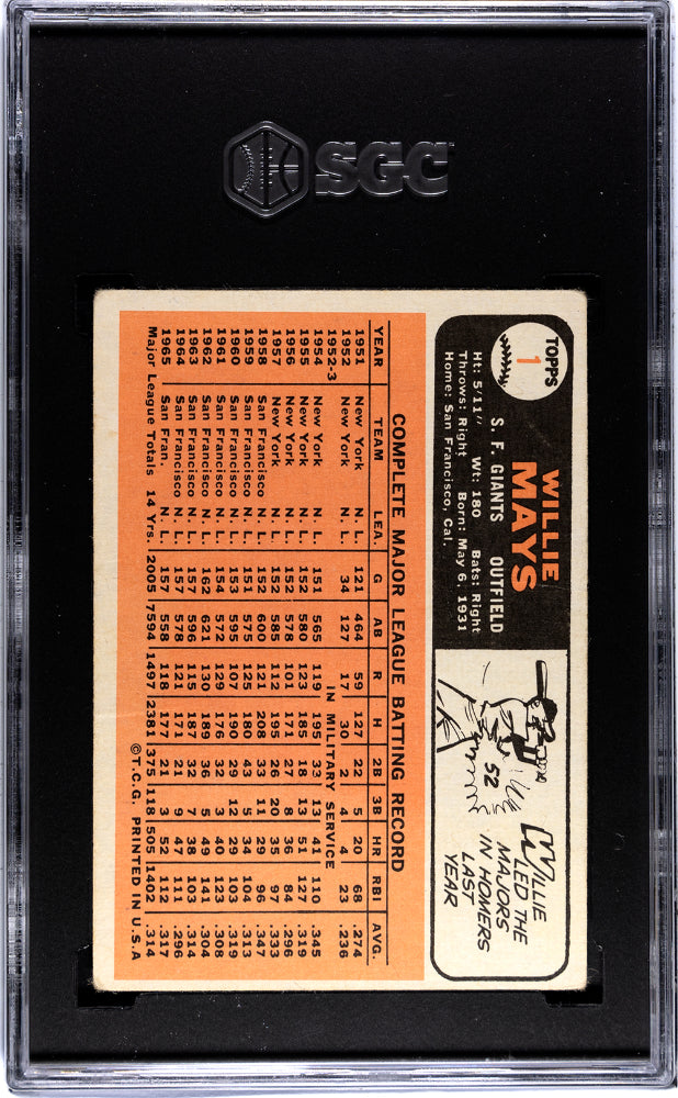 1966 Topps Willie Mays #1 SGC 2 San Francisco GIANTS HOF (A-6)