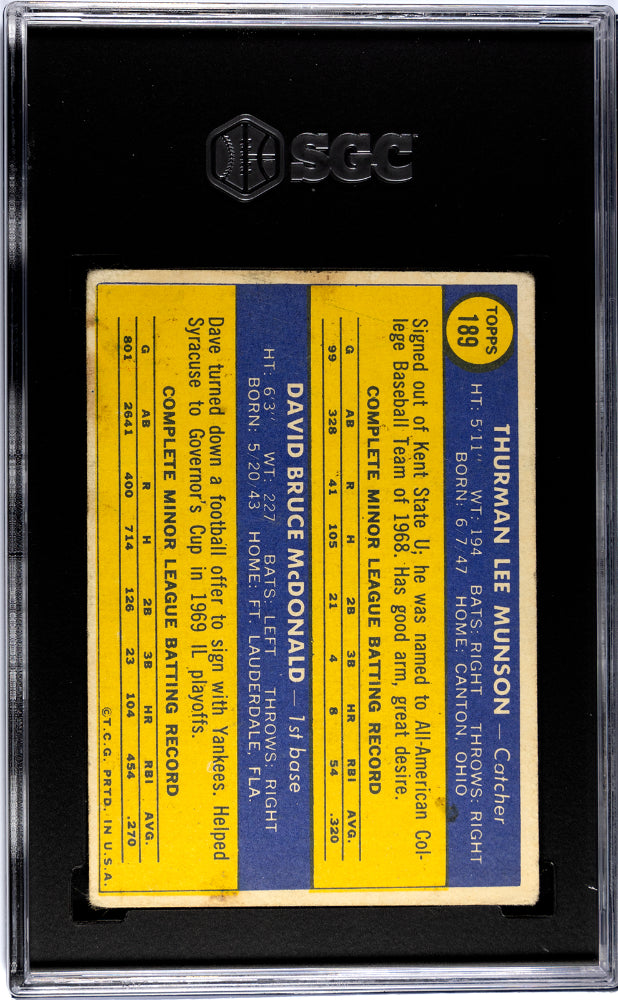 You are purchasing a 1970 Topps Thurman Munson #189 SGC 2. You will receive the exact item in the photographs. Thank you for looking. Listed With Mascot.Returns & Exchanges