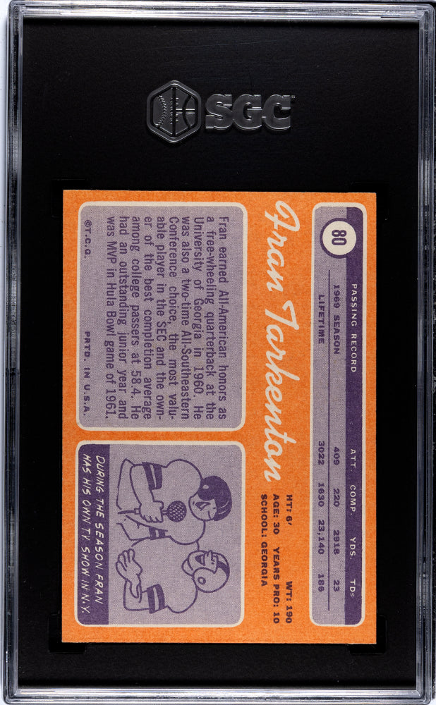 You are purchasing a 1970 Topps Fran Tarkenton #80 SGC 6.5. You will receive the exact item in the photographs. Thank you for looking. (A-2) Listed With Mascot.Returns & Exchanges
