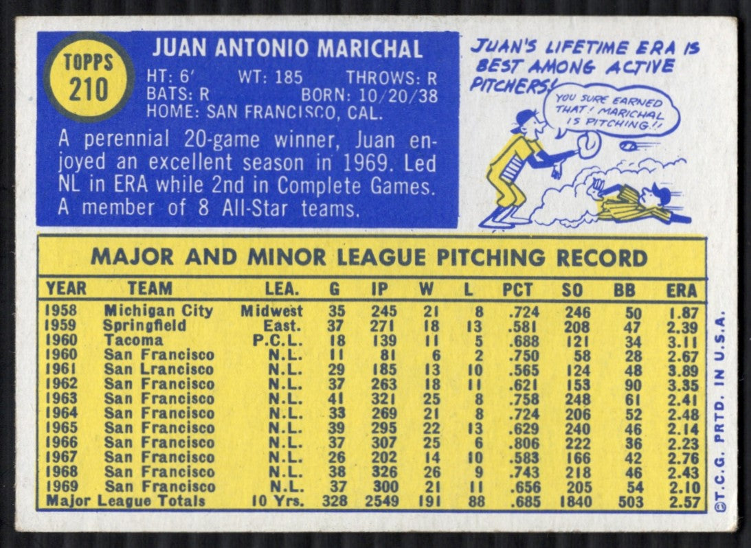 009-R25 You are purchasing a 1970 Topps Juan Marichal #210. You will receive the exact item in the photographs. Thank you for looking. Listed With Mascot.Returns & Exchanges