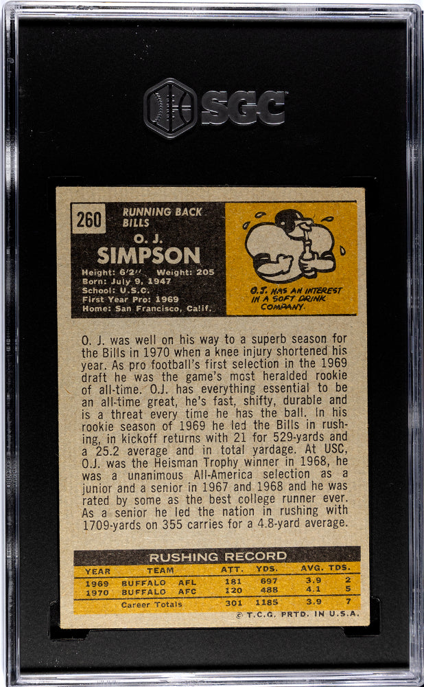 You are purchasing a 1971 Topps Oj Simpson #260 SGC 3. You will receive the exact item in the photographs. Thank you for looking. Listed With Mascot.Returns & Exchanges