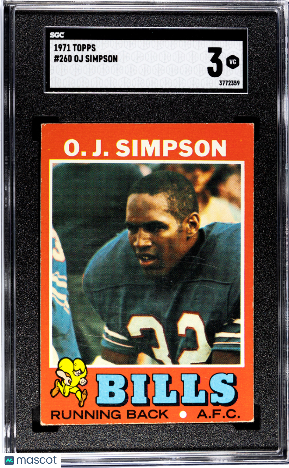 1971 Topps #260 OJ Simpson SGC 3 Buffalo Bills HOF**Centered** (B-2)